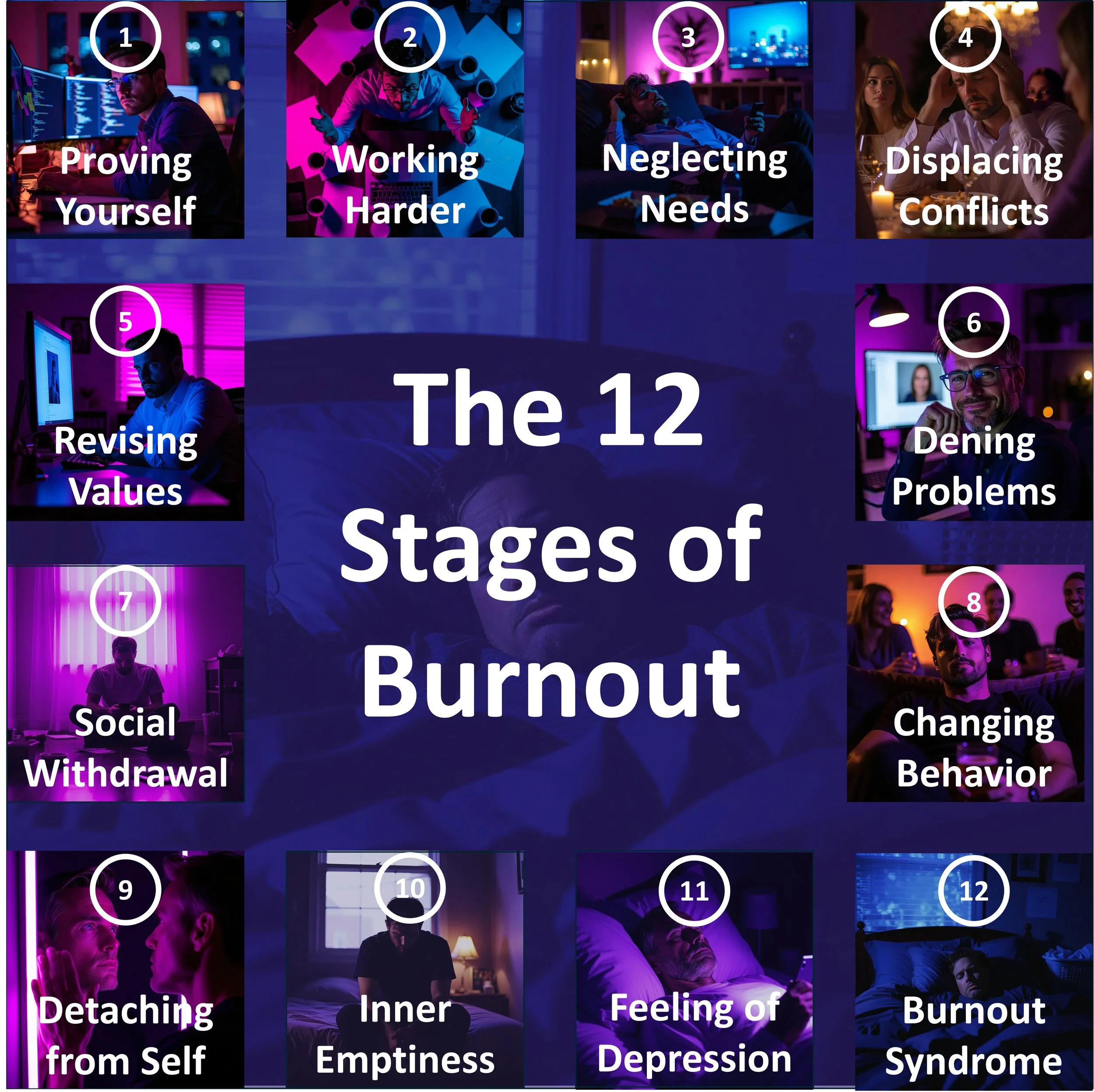 In this article, we'll walk through each of these 12 stages of burnout, help you identify where you might be, and most importantly, show you what you can do about it. Because here's the thing: your brain is incredibly resilient, and recovery is always possible.